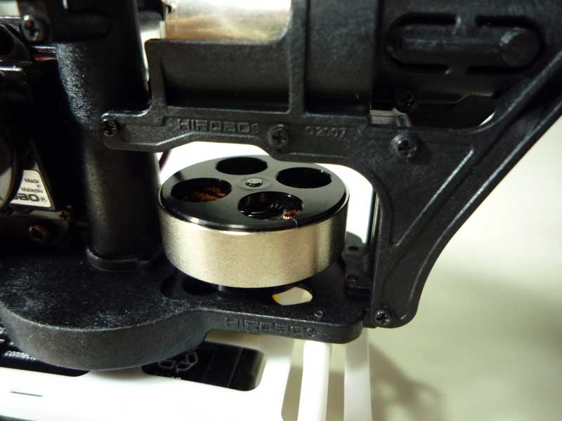 テールはダイレクトドライブではなく、シャフトドライブ方式。重心の関係だからでしょうか。バッテリは機体下方に抱え込むような形で取り付けます。LiPo7.2V-480mAhです。パッと見は高級なおもちゃという感じですが、やはりヘリメーカーが作っているだけあって細かな部分まで作り込まれた設計だと思います。