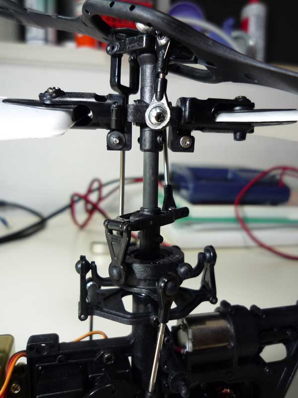 。メインローターの回転数と浮力が比例するので着陸時のスロットル開度の調整がかなり難しいです。室内用小型ヘリでのソフトランディングは難しいなぁと感じました。