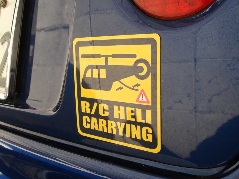 - ヘリとは直接関係ありませんが、車のトランク部分に貼り付けたコーションステッカーです。「赤ちゃんが乗ってます」のデザインに似せて作ってみました。