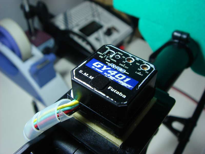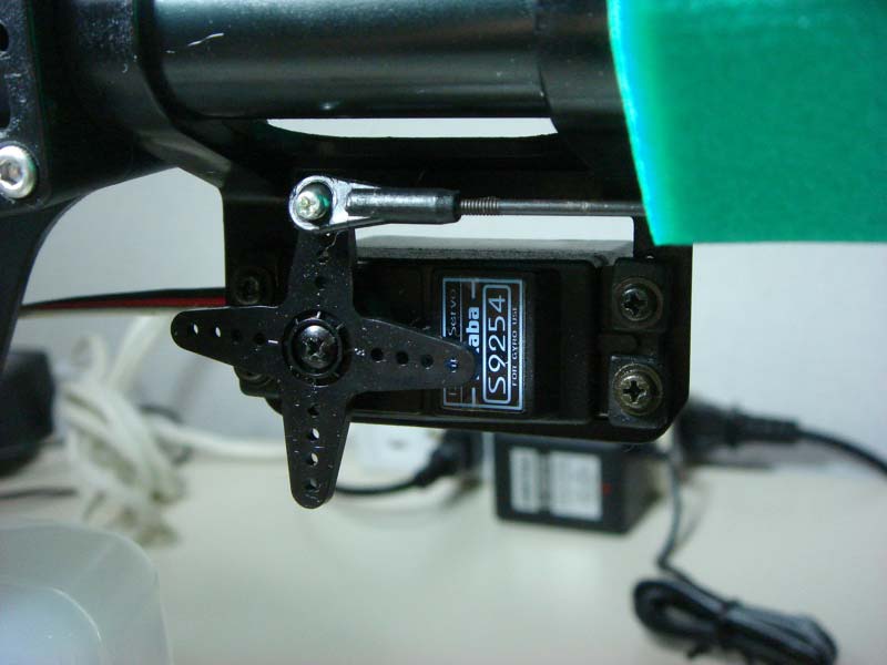 これはラダーサーボ。S9254です。GY401のセット品でした。サーボホーンはとってつけたようなものですが特に問題なく動作しているのでこのままで飛ばしています。コントロールロッドは標準のピアノ線のままです。