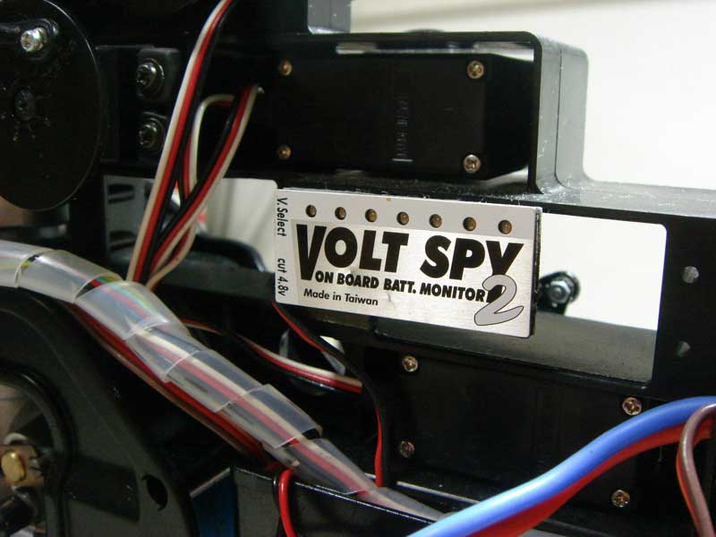 - 電圧監視用のVOLT SPY2です。あくまで簡易ですがオンボードで常に監視できるので重宝しています。バッテリは3700mAHの比較的大きなものを積んでいますが、半日くらいの飛行なら十分持ちます。