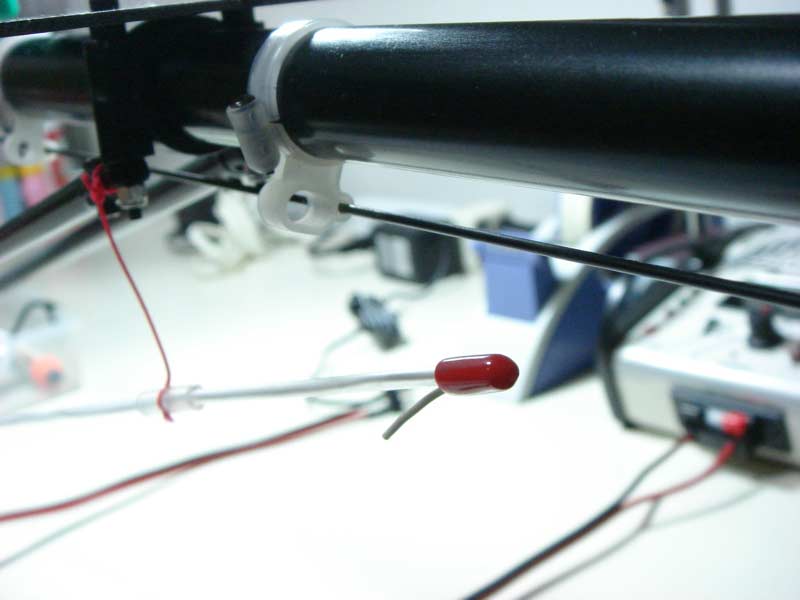 - 機体捜索用アラームです。以前は自作のアラームを付けていましたが、故障するようになったため市販のブザーを組み込みました。ブッシュに墜落する危険性がある飛行場では欠かせないアイテムです。