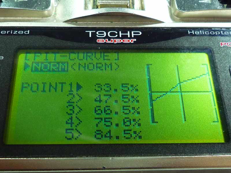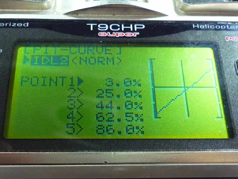 スロットルカーブに関しては特にいじりませんでした。机上で調整してもエンジンをかけるまではどうなるかわからないのでこれは現場で調整としました。