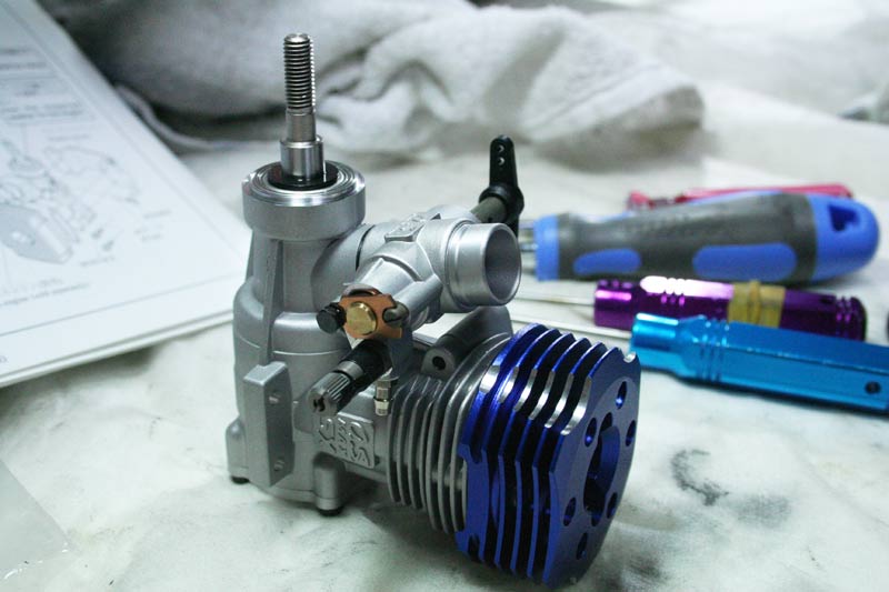 メカ無し・エンジン無しですから半完状態から組み込まなければいけませんが、とりあえず機体の清掃から。前オーナーによってある程度清掃されていましたが、やはり油にまみれた部分をそのままにしておくのは・・・と思い、まずはタンクを外しにかかりました。タンク内のチューブも劣化しているでしょうから交換です。しかしいざ外してみるとタンクとニップルをつなぐグロメットが劣化、さらにはタンク内のウェイトまでサビサビの状態です(^^;; ここはしかたなくタンクごとASSYで交換。次にエンジンです。クラッチベルも一部サビが出ている状態でしたのでピカールで磨き上げました。バラしてアルコールで洗浄し再度組み立てます。エンジンは OS/YSの2台がありどうしようか迷いましたが、HPMスカディーはYSで組み立てたので、今回の機体はOSで組み立てることにしました。