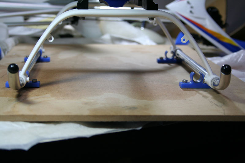 とりあえず今日はここまで。いつも使っている機体固定用のMDFボードですが、スキッドキャッチの幅が合わず、後日作成予定です。今までの機体はすべてローハイトスキッドに変更してきたため、ノーマルスキッドとはピッチが違うのが原因です。