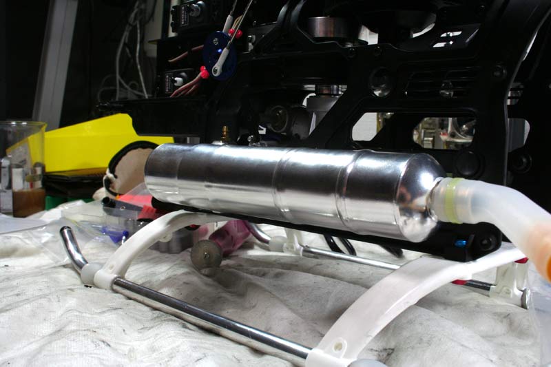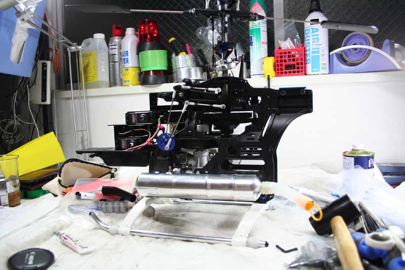 ここまでで結構時間がかかったので、最後にマフラーを取り付けておきます。まぁ、マフラーは取り付けない方が作業効率が上がるので一番最後でもいいかなと思ったのですが、見た目の誘惑に負けました(笑)今回はハットリ製の50HNS-2を選択。以前、懸賞で当たったものです。実は同じものがもう一本あるのですが、今回はお蔵入りとしました(笑)そんなこんなで時間は過ぎ、あっという間に明け方に・・・。次は電装・受信機関係ですかねぇ・・・。ふぅ
