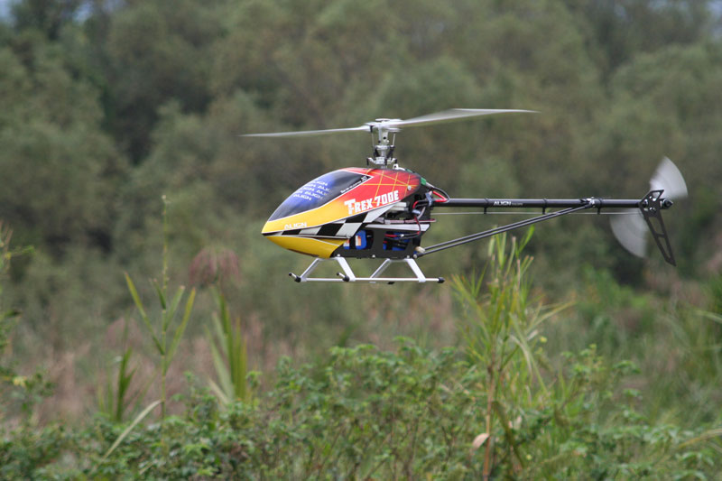 ラダーは若干気になるものの、レスポンスは【高速】でいくことにしました。テールローターもカーボンに変えたので、若干スティック追従が高速化された感じがします。