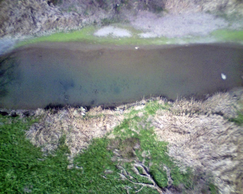 左:ずいぶん浅くなった支流 右:たまたま頭上を飛んでいたようです