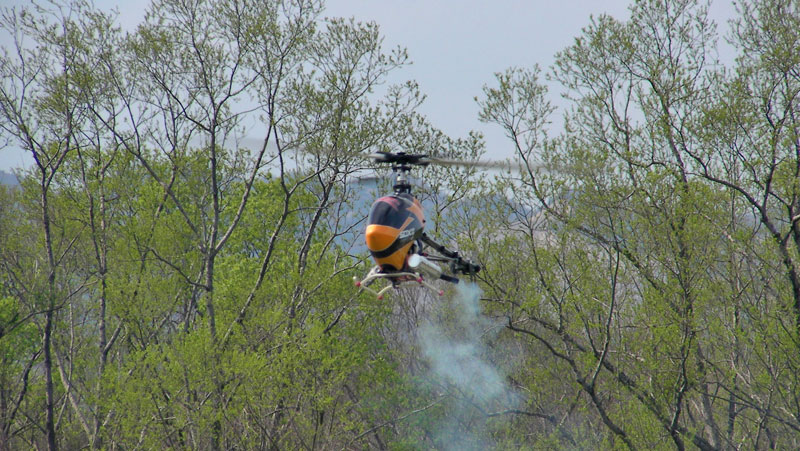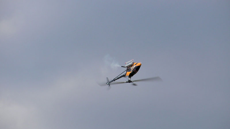。さっさと済ませます。ジャイロのニュートラル出しが終わったので、とりあえずヘッドロックで上空を流します。しかしなぜだかラダーの効きがイマイチで、おまけにテールがかなり唸ってます。【ブーン】というかなり大きな音です。※JYALAさん撮影の動画