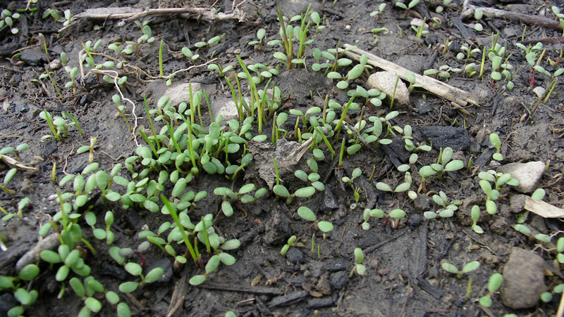 ずいぶんたくさん芽が出てきました。洋芝とシロツメクサの混合です。