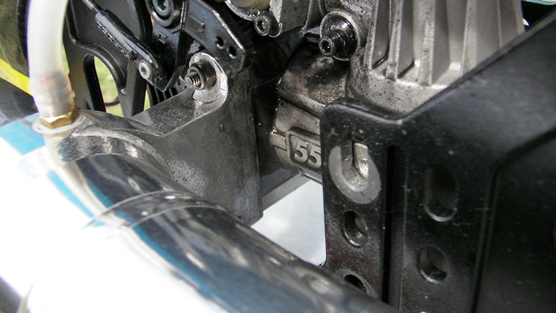 。ぼちぼち降ろすか…とアイレベルでホバリングしていたところ何だか排気チューブが妙に揺れてます。すぐに着陸し点検すると…エンジン&マフラーが外れかかってます