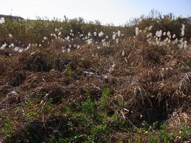 と思っているうちにブッシュの中へ消えていき墜落。プロポをよく見ると・・・ノーマルモードのままでした(爆)