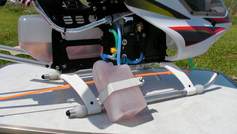 あ と上空飛行中、スキッド付近に謎の異物を発見。すぐにサブタンクとわかりました。ステーが外れてブラブラ状態。こりゃイカンということでチューブが外れな いようにそっと下ろし、再度長めのビスでステーを固定。事なきを得ました。上空で燃料パイプが外れてしまうと恐ろしいことに・・・。そういえばI店主が【とりあえずいらんものはトラブルの元になるから付けへん】といっていたことを思い出しました。TEAM JRの伊藤寛規選手も同じことを言ってましたねぇ・・・。危機一髪!