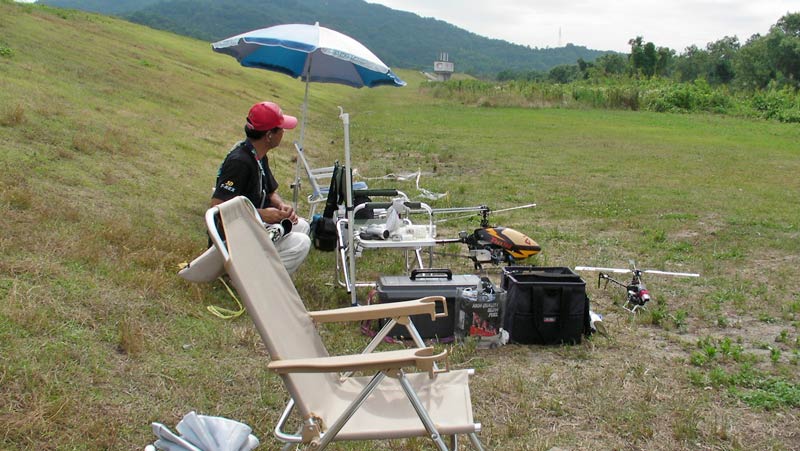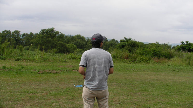 。遠くへ遣ると機体は真っ黒です。【見にくいなぁ〜】と内心思いつつも色々とフライトさせていると、案の定機体姿勢がわからなくなりブッシュへ墜落