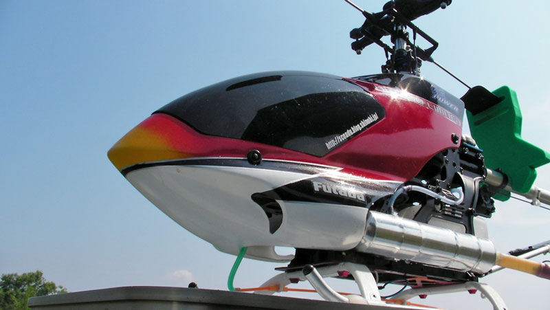 。いい感じで飛んでくれます。HOLD時のスロットルがやや締まり気味で、オートロさせるとエンジンストップ!してしまうことが多かったためやや開け気味に設定。これで問題なしです。風があまりなく、オートロはちょっと難しかったですがとりあえず壊さずに頑張りました。あと、ストールターンでのプルバック?にも挑戦。垂直でバックするのは結構怖いのですが、高度があれば何とかなります。テールに負担がかかりそうですけど・・・。結局SDXは2タンクで終了。続いて弐号機。SDXから外したカップリングを取り付け始動。エンジンは問題なし。ところがホバリングでメチャクチャ振動します