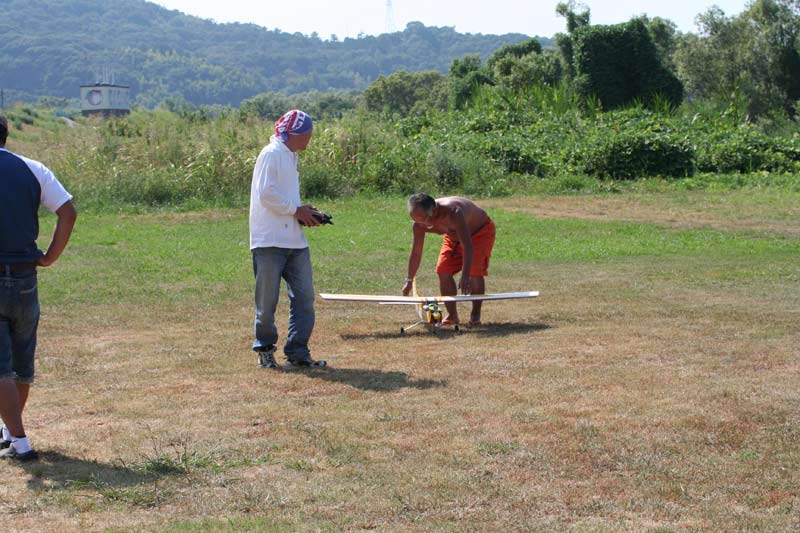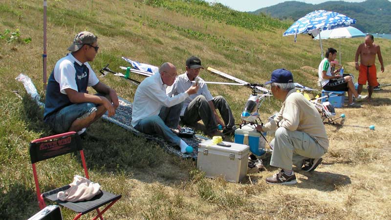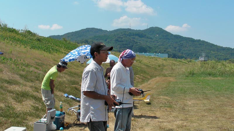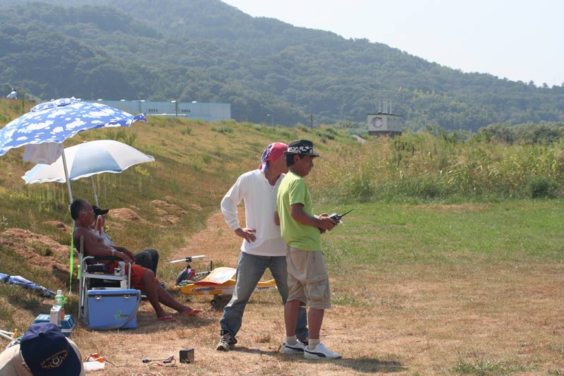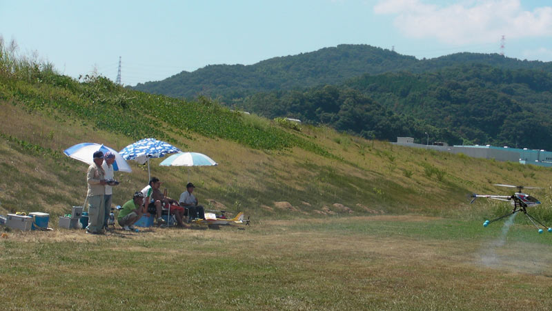 が発生しましたが、どうやらテールブームブレースの緩みだった模様。補修しその後は快調でした。暑さ寒さも彼岸までといいますが、まだまだ暑い飛行場