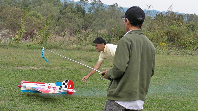 。飛行場へは9時30分過ぎに到着しました。すでに何人かが飛ばされていましたが、早速SDX初号機・弐号機を準備します。初号機はエンジン換装後初のフライトです