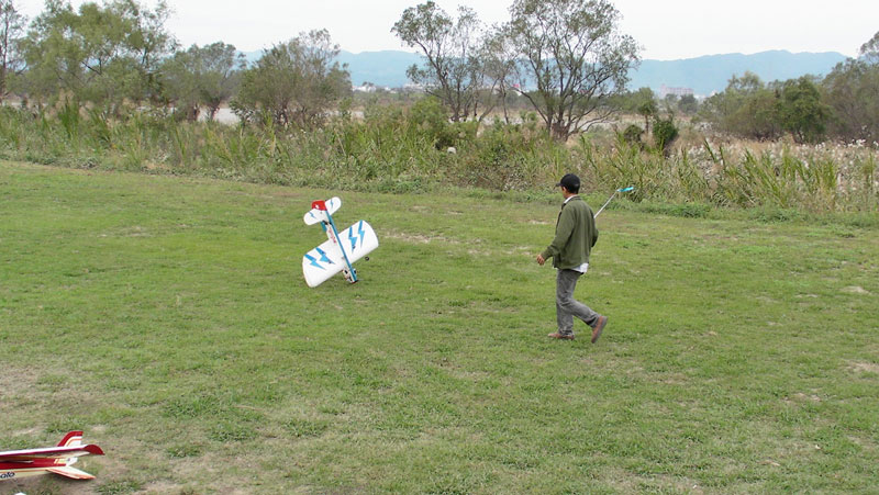 やってください(^^)/・K2さんは珍しくファンフライ機のGeeBeeを持参。ホバリングも披露してくれました。Eさんは慣らし終了後の55HZで【怖いなぁ】 といいつつSDXをブンブン振り回し。
