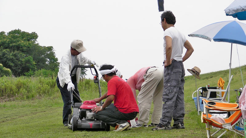 のため草が重く、草刈り機がよく目詰まりを起こしましたが1時間半ほどで終了。その後は皆さん思い思いに飛ばされていました。天気がイマイチで、途中雨がパラつく場面も。N井さんは雨が降って早々に引き上げられましたので