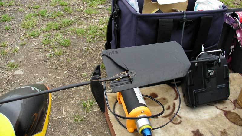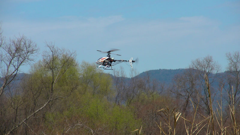 僕 はいつものように弐号機・参号機の2台体制。調子の良かった参号機はエンジンをかけた瞬間、クーリングファンの羽がバラバラに。原因は子供が突っ込んでいたビスでした(笑) I戸さん曰く【5年ヘリをやってきているが、こんな壊れ方を見たのは初めて】と。たしかにこんな壊れ方はしないでしょうねぇ、普通は・・・。 かといってフライト前にフレームにいろいろ差し込まれたビスを見るなんてことはないですし。今回参号機は飛ばすこともなく撤収。弐号機で遊び倒すことに。最近、何となく背面が少しだけできるようになってきたのと高度が取れるようになってきたのでロールを練習。なかなか難しいですが楽しいです。 途中、オートロに失敗し横転。スピンドルが逝ってしまったのとロッドエンドが割れたくらいでしたので、持ち合わせた部品を使ってその場で補修し再度フライト。一番最後のフライトでは調子よかったはずのエンジンが突如エンスト。緊急オートロとなり、ブッシュに不時着。回収直後バックプレートが相当熱かった ので、オーバーヒートかと思っていたのですが、よく見るとエンジンに燃料が来ていません。結局タンク内のシリコンチューブが抜け落ちていたことが判明。整備不良でした(^^;;