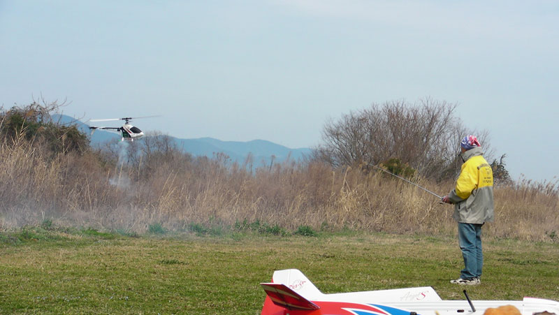 Y2さんは小型電動機SU-31、T-REX450をフライト。徐々に高度を上げてきているので、ぼちぼちループに挑戦でしょうか?