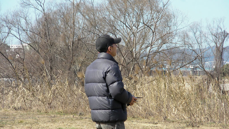昨日の土曜日とは違い、風も穏やかでいい感じのお天気。飛行場へ到着すると数人がすでにフライトさせています。昨日調子の悪かった初号機を飛ばすことに。あ、もちろんエルロンレバーは組み直しました(笑)