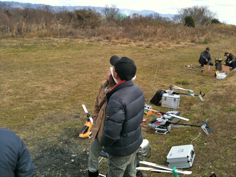 EさんはSDXに見切りを付けたのか(笑)T-REX600を新調。50エンジンですが機体の軽さも相まってか、かなり機敏に動いていました。その後軽い墜落があったようですが僕はお昼過ぎに撤収のため詳細不明です。