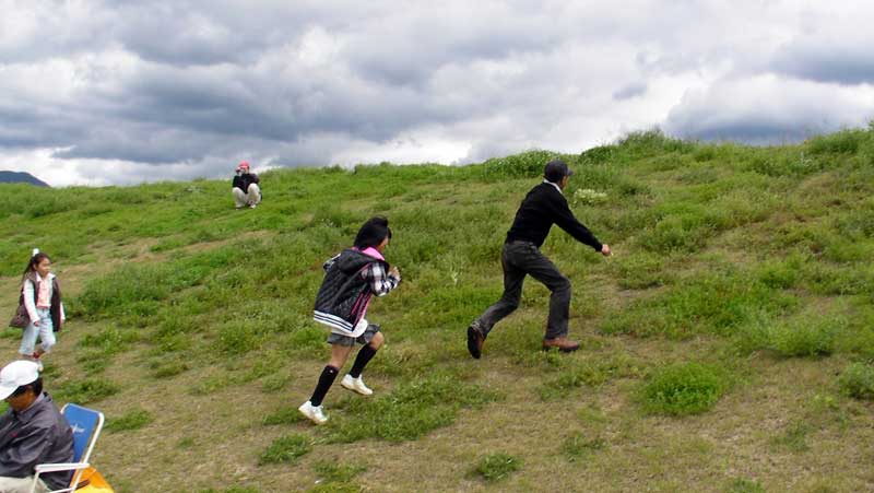 飛行場ではすでに草刈りの体制が。ただ、草刈り機保管担当のKさんがまだおみえでなかったのでまずは飛行場を若干拡張するため石の掘り出し、下草刈りから。今日はI戸さんのお嬢様お二人も来場、お手伝いしてくれました。小1時間ほどの人海戦術でおよそ60cmほど奥へ拡張。その後到着したKさんの草刈り機によりきれいに草が刈り取られ牧場風