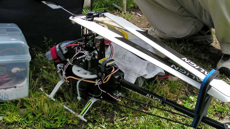 他 のみなさんも飛ばされていましたが、何せこの風。瞬間的には10m/secを超えるほどの風のため、皆さん軟調です。T-REX700NのI戸さんも結構苦労されている様子。また、450は舵が効き過ぎるようでEXPの調整をされていました。新生450は700Nをそのまま小型化した感じで、ビックリするくらいのメカニズムです。こりゃ良く飛ぶはずです(笑)