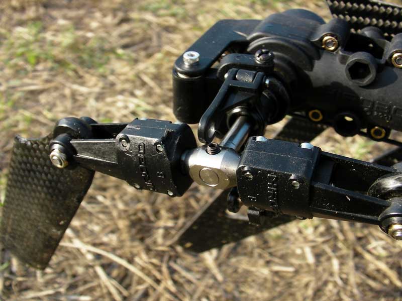 。ローターはK&Sの樹脂ローターを使っていましたが、ローター自体が2枚おろし になったくらいでエポキシで接着すれば再利用可能そうなくらいのものでした。まぁ使いませんけど(笑)左:スタビバーとリンケージの折損がわかります。 右:お約束のテールブレードホルダー破損。