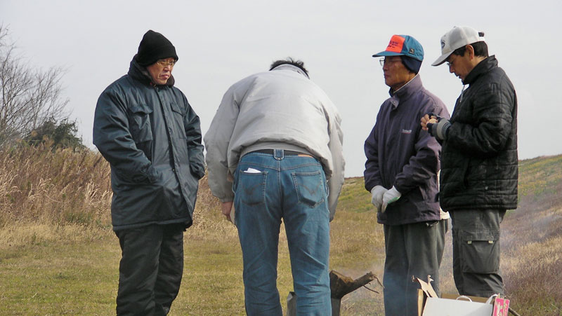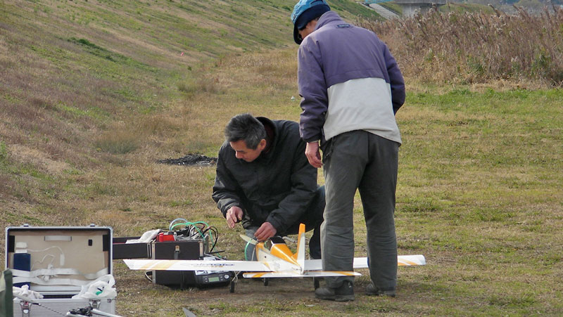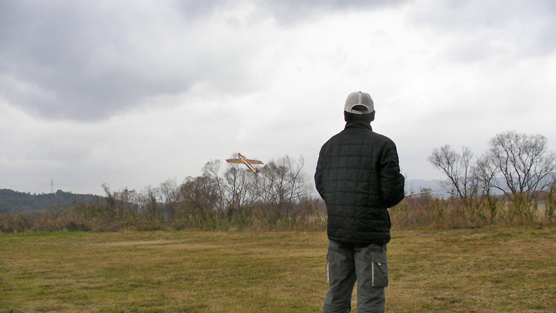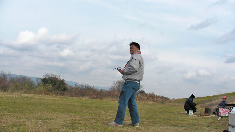 が振りそうな低い雲でしたが、飛行場は若干マシ。でも風はそこそこあり、日差しもなく結構寒かったです。今日は総勢8名が集合。一番乗りはY2さんでした。JYALAさんはご家族に疎まれつつ