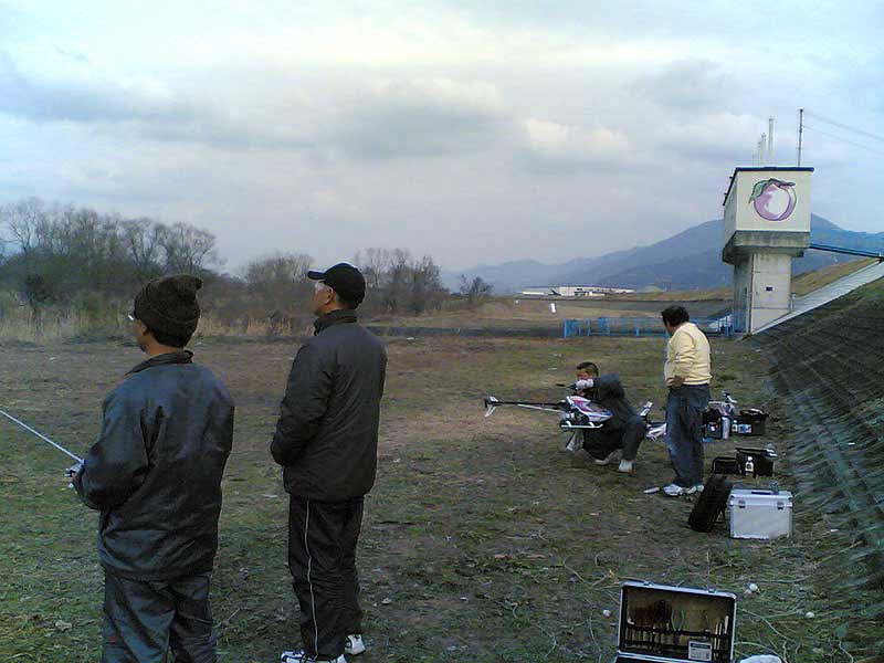 飛行場の整備が一段落した後はフライトです。整備作業だけでフライトされずに帰られたフライヤーの方も何人かおられました。結局ヘリフライヤーばかり6人 ほどがフライトを楽しみました。今日は3DバリバリのダブルIさんがおられたので見ていて飽きませんでした。Kさんは上空も随分安定し、対面飛行もチャレ ンジし成功、墜落もなく無事に帰還しました。少し風が冷たくなってきたのですがそんななかMさんが突如ノーコン状態となり水門側の水路に墜落。詳細な原因 は不明ですが、テールコントロールが全く効かなくなった様子。墜落した機体を回収してみるとテールピッチレバーを固定しているはずのM2.6キャップスク リューがありません。おそらく、このスクリューが外れてしまいノーコンになったのではないかと推察されました。このスクリュー外れが原因で墜落した機体を 過去に何度かみかけました。HIROBO製のテールコントロールは大体似たような構造ですので要注意です。少なくともネジロックぐらいはさしておいた方が いいと思います。