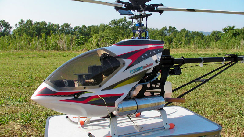 ので、すぐさま電子機器類をバラし始めます。サーボ・受信機はすべて外しできる限り解体。アルコールを吹ける部分はアルコールで脱水処理し乾燥させます。サーボを外すのが手間でしたがなんとか終了。なお、機体そのものはほぼ無傷で回収できています。スピンドルはかなり逝っていますが、メインローターは2枚とも無事。まるで第2次世界大戦中、米軍に鹵獲されたの古賀忠義一飛曹の零戦のようです(^^;;回収後の壱号機。パッと見には元気ですが水滴がついています(^^;;