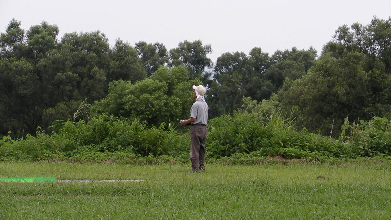 7月最後の土曜日、今日は午後から研究会のため少し早めに仕事を切り上げました。先日落とした初号機のテストフライトも兼ね飛行場へ
