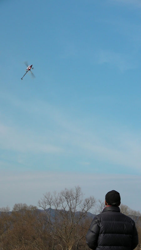 さて、新調ジャイロですので慎重に…(シャレ?)動作方向に問題ないと思うものの、やはり最初は緊張します。とりあえずホバリングできたので動作方向があっていることは確認。さて、軽くピルエットでも…。ところがここで妙な動きが。時計方向のピルエットでかなりのお釣りが出てしまいます。感度が低すぎるのかなぁ…とりあえず感度を徐々に上げていき、69.5%までは上げられました。これ以上だと、フルハイを打ったときにハンチングしてしまう感じです。一方アイドルアップ状態ではお釣りは少なめ。ほとんど気になりません。こちらの感度は67.5%程度。急なターンなどでは若干ハンチングするものの許容範囲かと。これから先は微調整かな…。Post your Comment