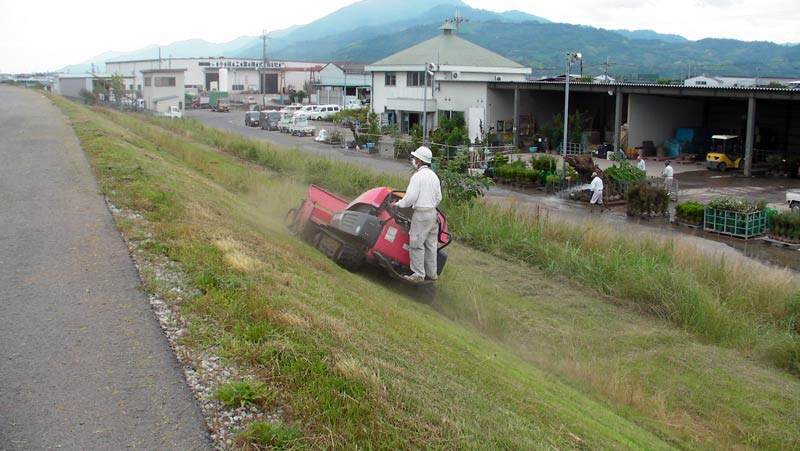 は相当なもの。やはり個人で所有するレベルではありませんが、広大な草を刈り取る場合は作業効率は良いと思います。どちらも斜面で作業可能というのがすごいですよね。飛行場なんかは平面でもしんどいですが、斜面はさらに大変だとおもいます。