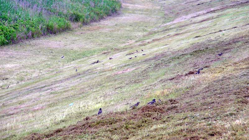 草を刈った後にはエサが多いためか小鳥の大群が襲来
