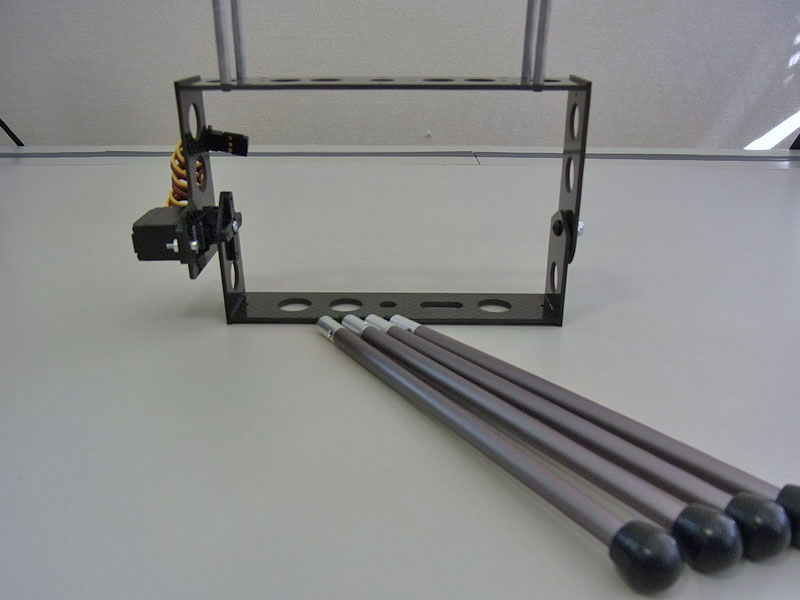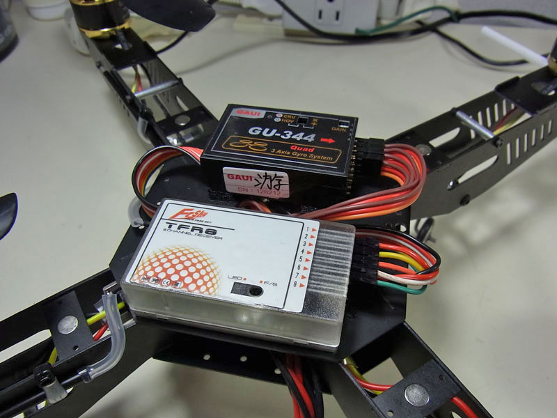 です。ヘリしか飛ばしてなかったからなぁ・・・(^^;; 今回の受信機は互換受信機のTFR8。FUTABAからはいろいろといわれているようですが、それほど遠くへは飛ばさないのでたぶん大丈夫でしょう。一応、ヘリのように3モード切替にし、標準をHOLDにしました。これならおそらく一気に暴走・・・ということはないはず。あとはホバリングモードとクルーズモードを切り替えるようにしました。