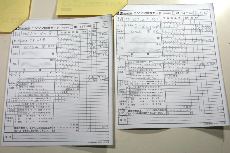 。修理報告書が同梱されており、内容は以下の通り。初号機エンジン(#147180)