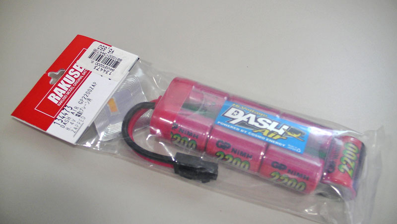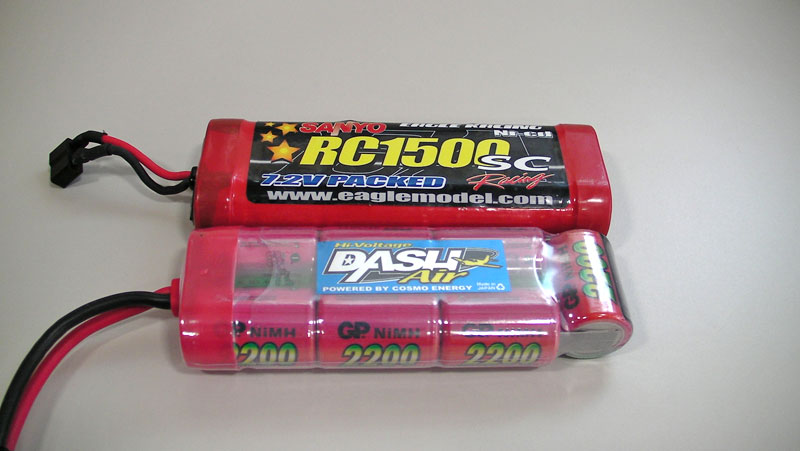 以前使っていたのはヘリを始めた頃から使っているSANYO製のNiCd6セル7.2Vのものです。こいつを2つ直列に繋ぎ14.4Vで使用しています。 今までスターターバッテリが上がった記憶はないのですが、連続使用したりする時などの後半は何となくダルになってきている感じでした。スターター自体の問題かも知れませんが、 とりあえずお気楽にバッテリから交換です。