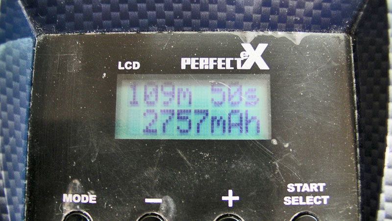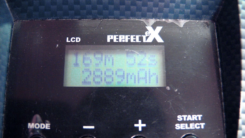 標準で付いていた端子は電動プレーン用の大電流用コネクタですが、いつものようにディーンズタイプの2ピンT型コネクターにハンダ付けし直します。ちょっと試しにスターターに繋いでみましたが全く動きません。どうやらカラの状態のようです(笑) 充電器に繋ぎ1Aでチャージ開始。最終的に2889mAh入りましたが入りすぎ? もう片方も2757mAh入りましたが・・・。まぁ、シビアに使うものでもないので良しとしますか。