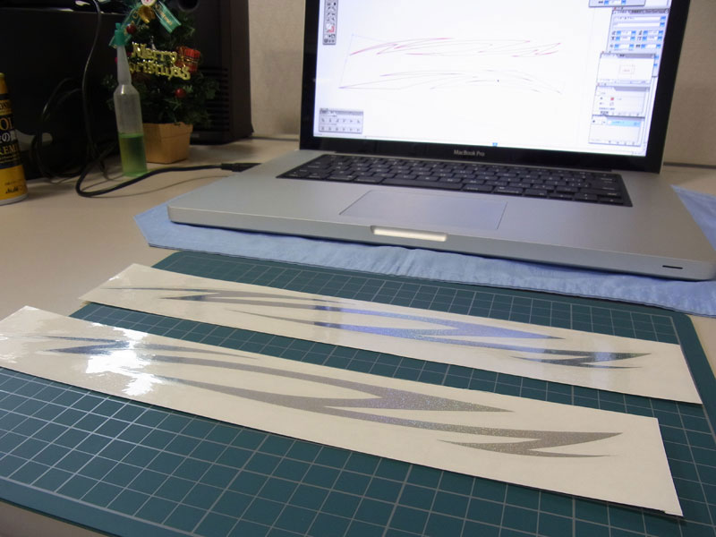 。仕方ないので仕事の合間に室内作業モードに。いつものようにカッティングプロッタを使って小物作成です。まずはローター用のホログラムシート。疑似餌であるジグやエギを作成するために使用するシートを切って使っています。そのためあまり長さが取れません。30cmが限界です。気が向けばもっと大きなシートを買ってみようかとも思ってますが、まぁ需要もあまりないし・・・(笑)