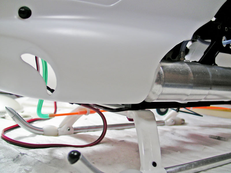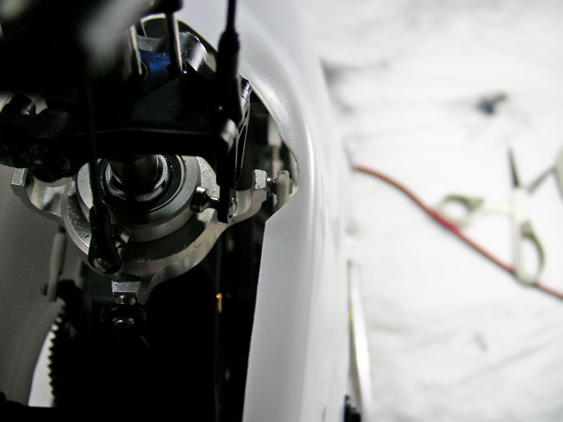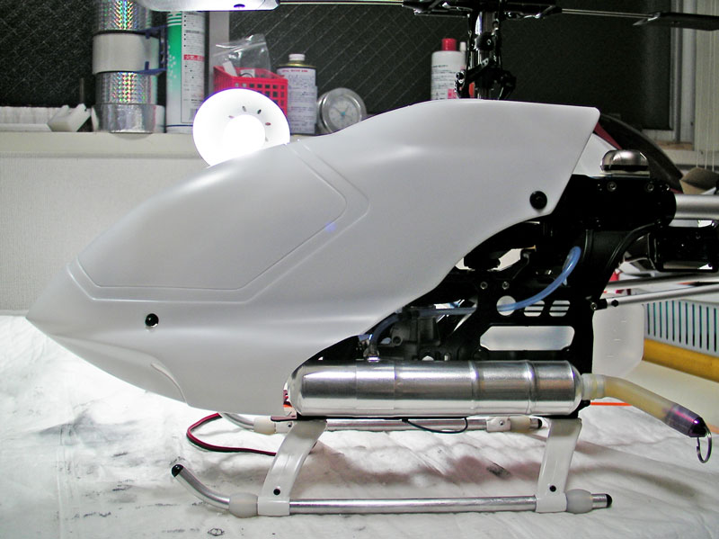 か ら。買ってきたばかりのPPキャビンをカッターナイフでエンヤコラと切っていきます。まぁ、そう難しいことではないのですが失敗すると修正が効かないので 一応慎重に。切り抜いたらとりあえずフレームに仮組。どうせスワッシュ回りのリンケージが干渉するでしょうから干渉しないようにさらに切れ込みを入れま す。HPM/SWMどちらでも使う可能性があるのでどちらでもいけるようにしておきます。