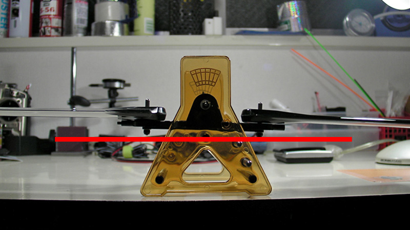 バランサーに乗せたところ。赤線は基準水平線のイメージです。