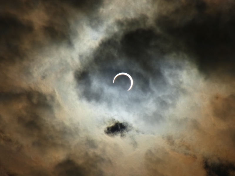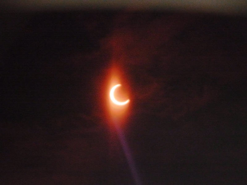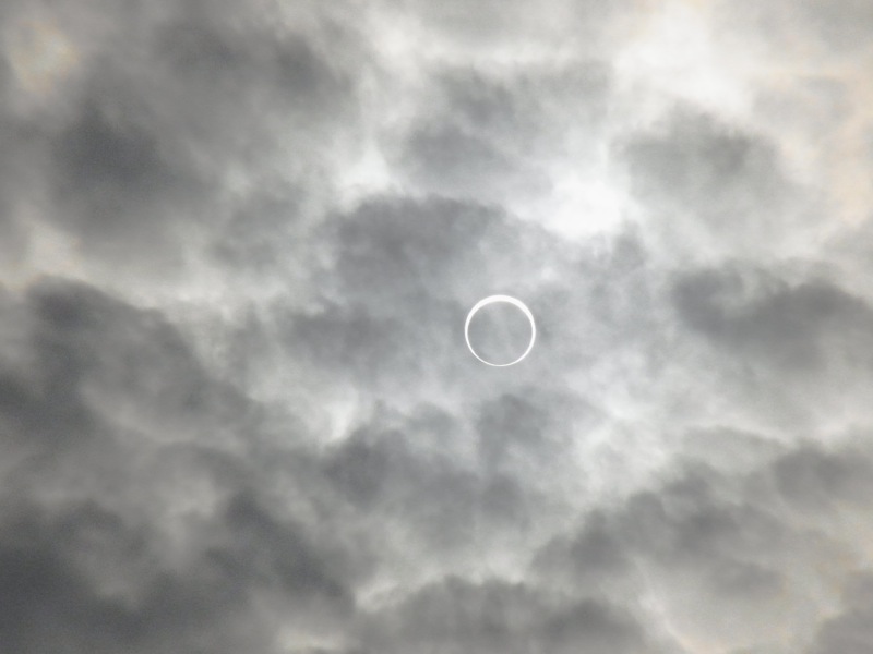 一昨年の皆既日食に続き、今年は金環食。地元でも十分観測可能という条件は今後数十年は訪れないようで、まさしく一世一代の天体ショーとなりました。【地球と月との距離:地球と太陽との距離≒1:400】という条件に加え、【太陽の直径:月の直径≒400:1】という奇跡とも思える事象が太陽と月の見かけの大きさをほぼ同じにしているため日蝕が起こるのですが、人の手ではどうしようもできないまさに神の領域だけあって神々しいものでした。 宿直明けで少し早めに職場を出て自宅へと戻り、再度出勤前に観察。こちらは快晴ではないものの充分日蝕が観察できる気象条件。7時過ぎにはすでになんとなく光が弱くなった感じで、7時28分の食の最大時には光がかなり弱くなるのがわかりました。とりあえず適当にデジカメで撮影。先日の月食も素敵でしたが、今日の金環食はとても良かったです(^^)/ 家族揃っていい思い出になりました。 ラジコンの事をしばし忘れる天体ショーでした。