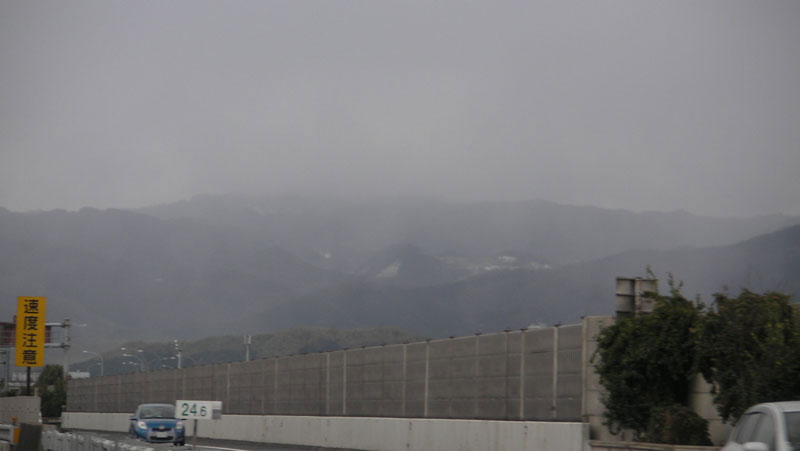 と聞いていたので早めに家を出たものの、天理ICを超えたあたりから怪しげな天候に・・・。高峯くらいにさしかかると結構な吹雪