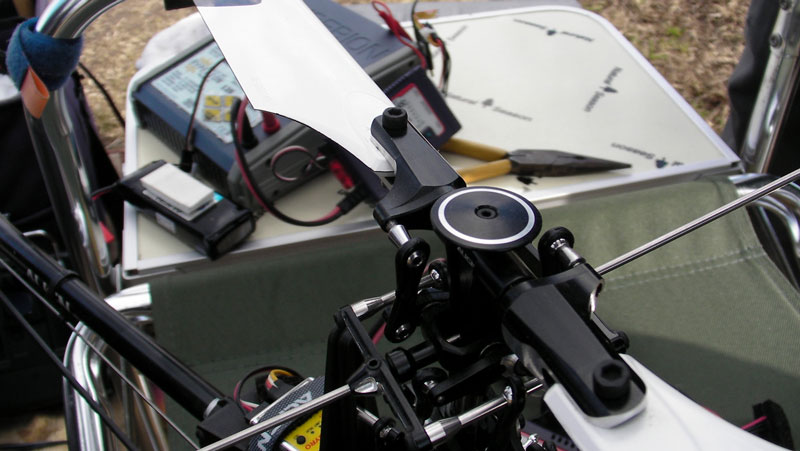 僕はギャラリーですので見ているだけでしたがJYALAさんがT-REX450をフライト後、ブレードホルダー部のピボットがゆるくなっているのを発見