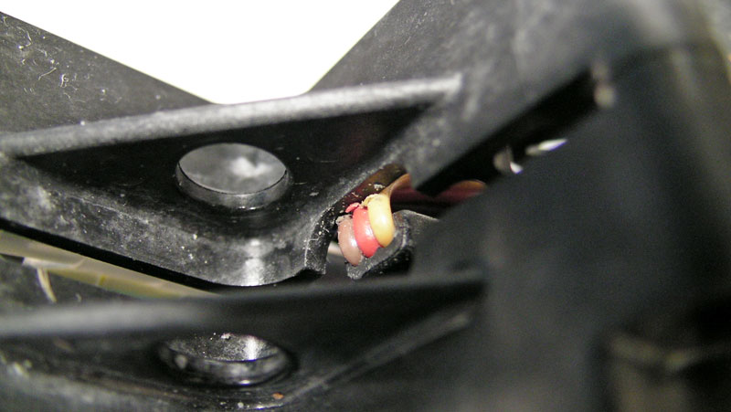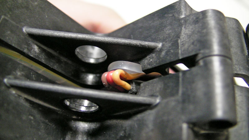 。とりあえずリード線をゆるめに這わし、手持ちのシリコンゴムで保護。今後本格的な対策を考えます。断線する前で良かったです・・・