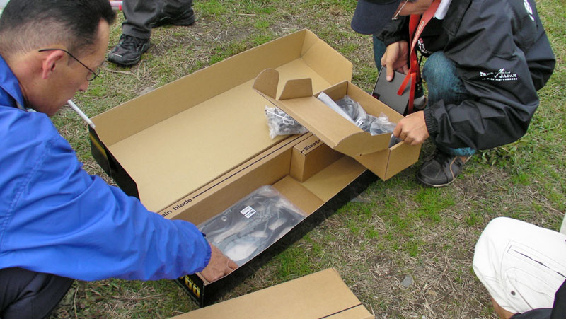 です。早速箱を開け、みんなでいろいろとアセンブル。僕やY2さんはT-REX音痴なのでとりあえず頭領K2さんの指示されるままにフレームを削ったり、リンケージを作ったりというような一般的作業