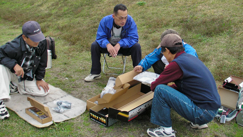 さて、その後はJYALAさんやK2さん、Kさんなどいつものメンツ。そして珍しく午前出動だったのが…Uさんです。SDXを持って登場したものの、その後【時間がないから…】ということで先日買いそろえた700Nを飛行場へ持参。機体はもちろんのこと、受信機やエンジン、マフラーまで完全な新品です